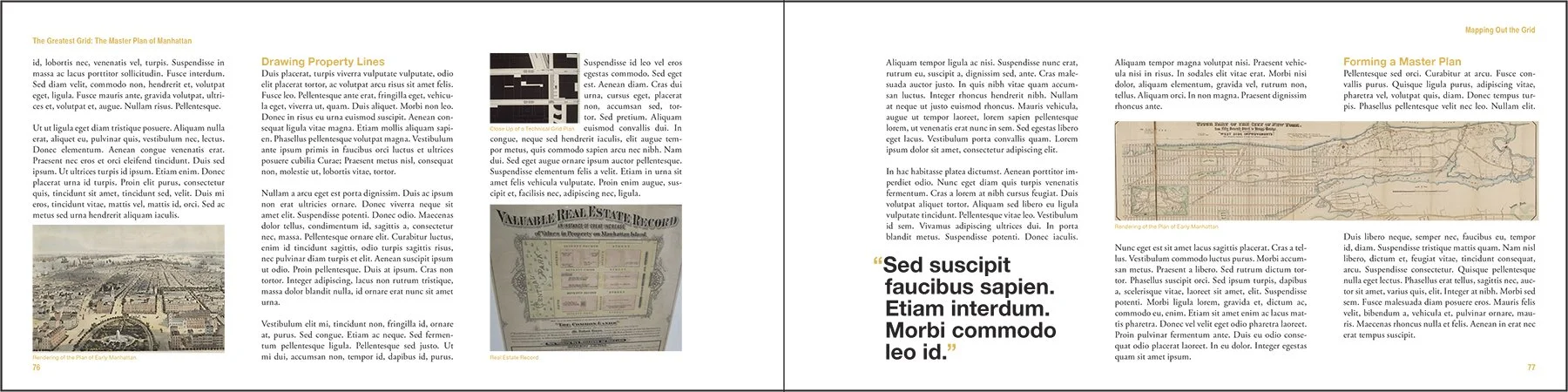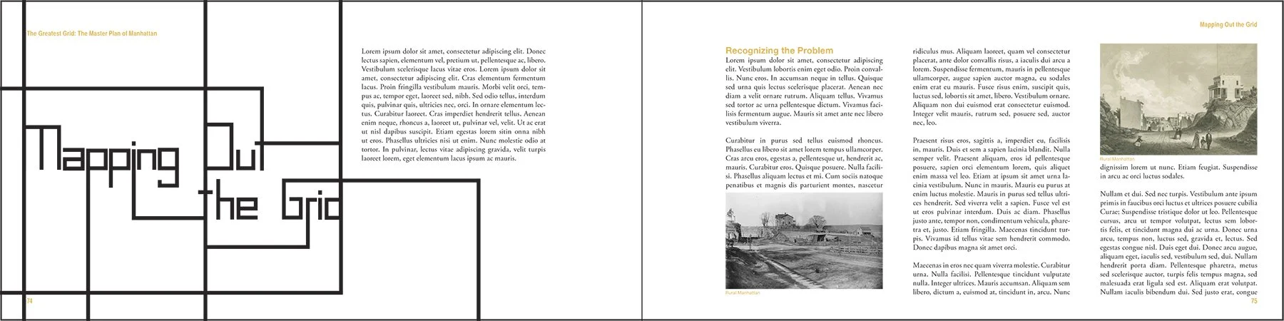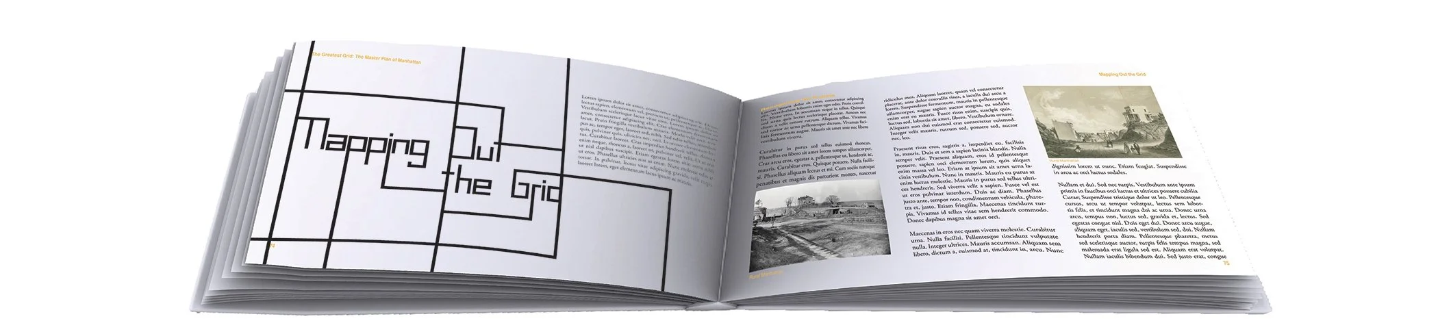 Below is a project where the challenge was to create a typography-focused branding for a museum exhibit on the layout of Manhattan’s street grid.